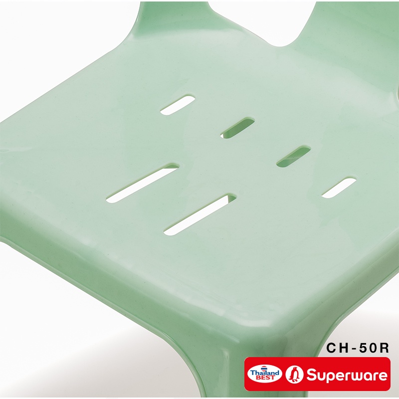 Srithai Superware เก้าอี้พลาสติก มีพนักพิงรุ่น ที่นั่ง สำหรับ สนาม นั่งเล่น วัด โต๊ะจีนรุ่น CH-50R เซ็ต 4 ตัวมียางกันลืน