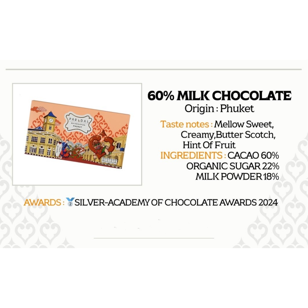 PARADAi - 60% Milk Chocolate Bar (origin Phuket) / ภราดัย - 60% มิลค์ช็อคโกแลตชนิดแท่ง (เมล็ดโกโก้จากภูเก็ต)