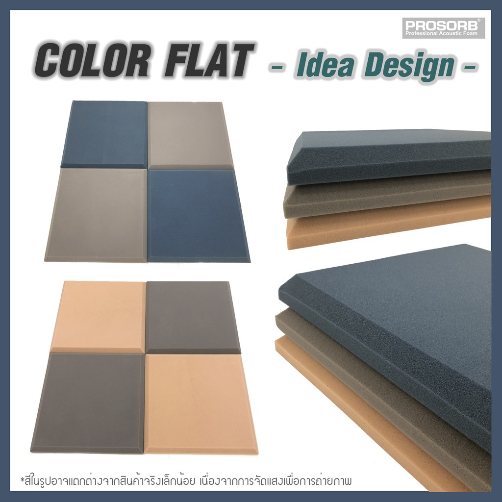 (สีเทา 4 ชิ้น/แพ๊ค) ฟองน้ำซับเสียง Acoustic Foam FLAT ลดเสียงก้องสะท้อน มีใบรับรอง ไม่ลามไฟ Prosorb