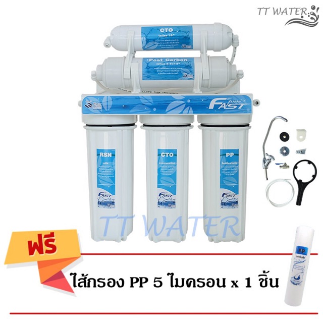 FAST PURE เครื่องกรองน้ำ 5 ขั้นตอน พร้อมอุปกรณ์ติดตั้งครบชุด แถมฟรี ไส้กรอง PP 5 MICRON x 1 ไส้