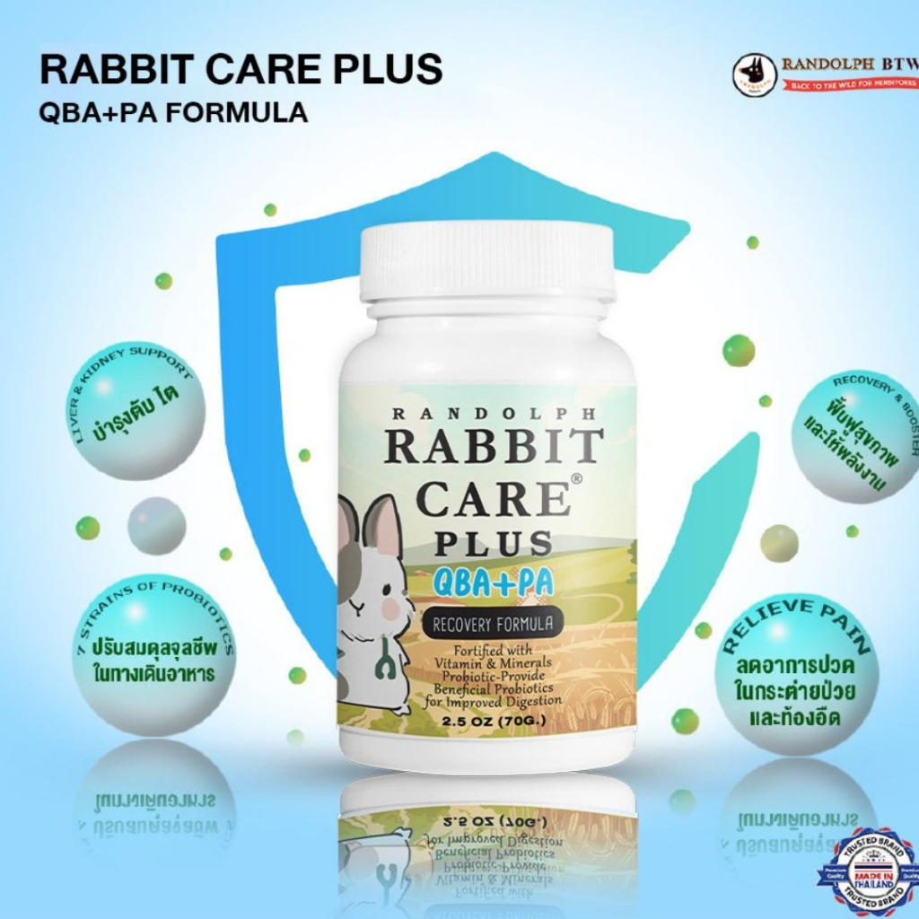 แรบบิทแคร์สูตร QBA+PA ฟื้นฟูกระต่ายป่วย ช่วยลดอาการปวด Randolph Rabbit care QBA+PA 70 g.