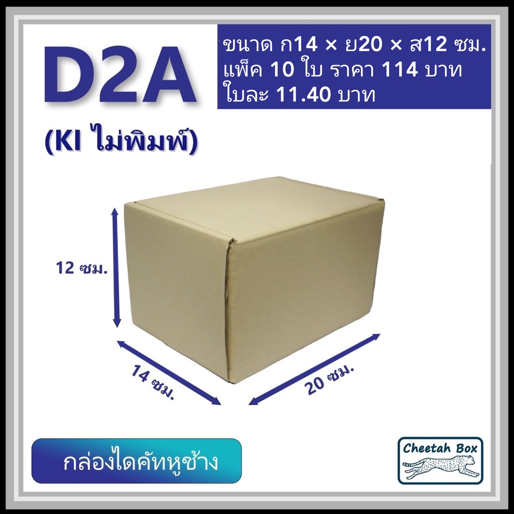 กล่องไดคัทหูช้างขนาด 2A รหัส D2A ไม่พิมพ์ (Die-cut Box) ขนาด 14W x 20L x 12H cm.