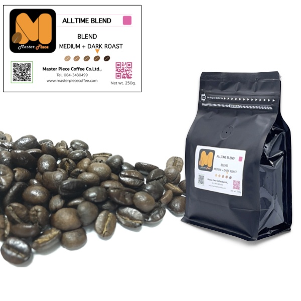 เมล็ดกาแฟคั่ว สูตร Alltime Blend ( 1Kg.)ตรา มาสเตอร์พีซคอฟฟี่ masterpiececoffee เมล็ดกาแฟคั่วแท้100% อราบิก้า+โรบัสต้า