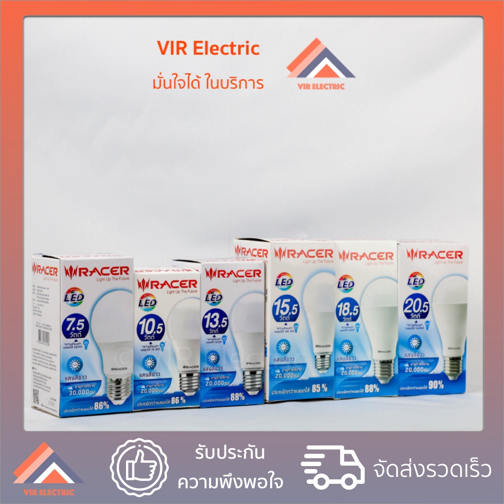 พร้อมส่ง RACER หลอด LED 7.5w 10.5w 13.5w 15.5w 18.5w 20.5w ขั้ว E27 แสง Daylight Warmwhite หลอดกลม