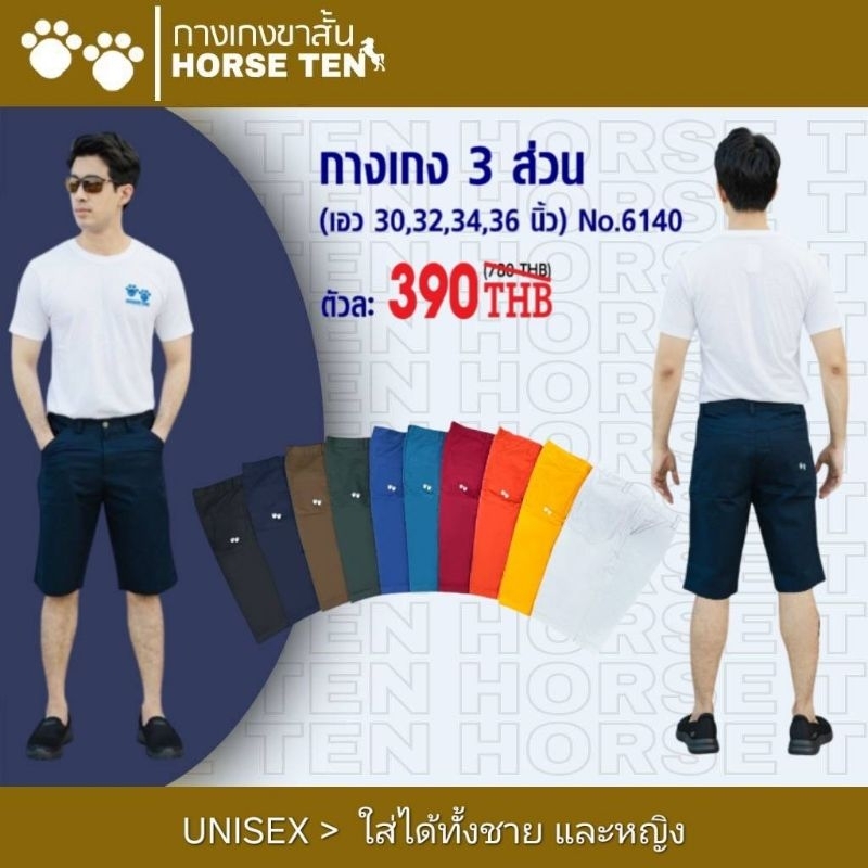 Horse ten กางเกงเอวกระดุม ขาสั้น 3 ส่วน ทรงตรง กระเป๋าหลังแปะ #6140