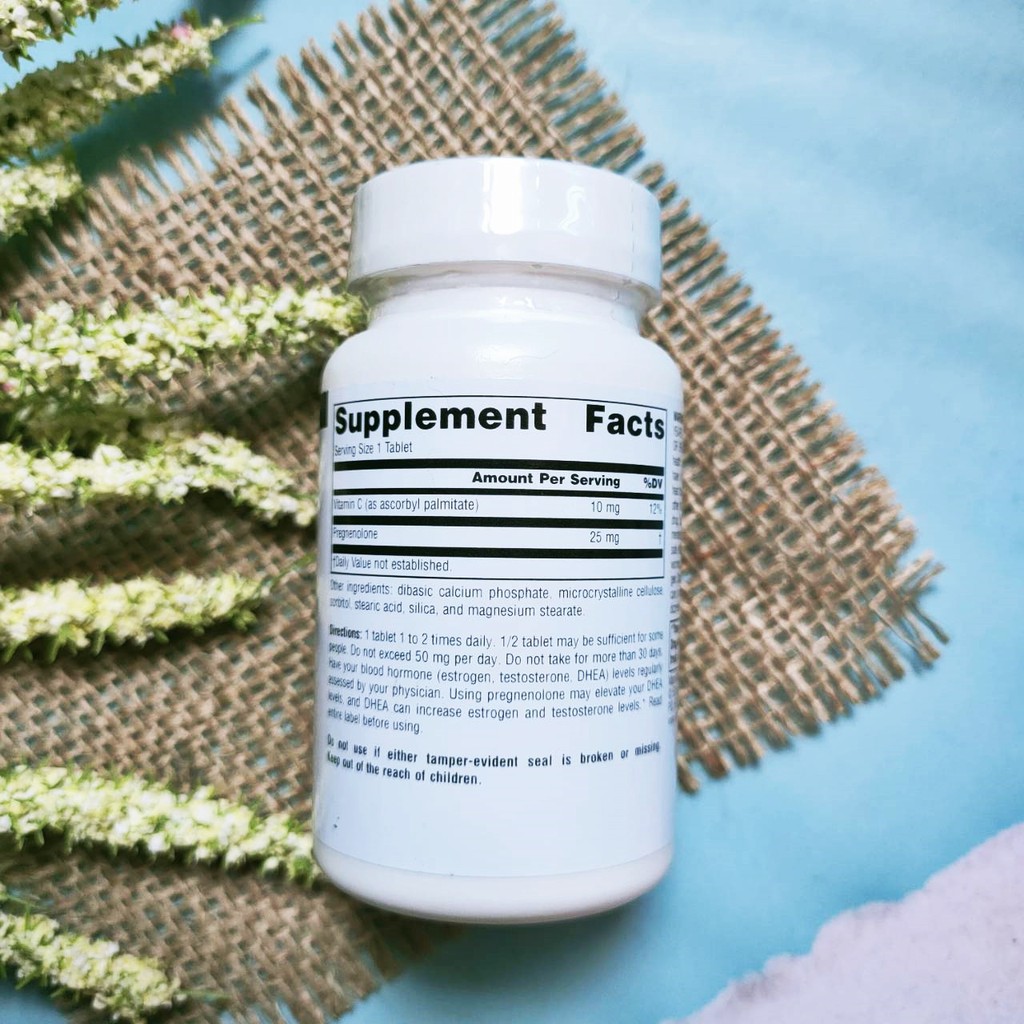 เพรกนิโนโลน Pregnenolone 25 mg 120 Tablets - Source Naturals