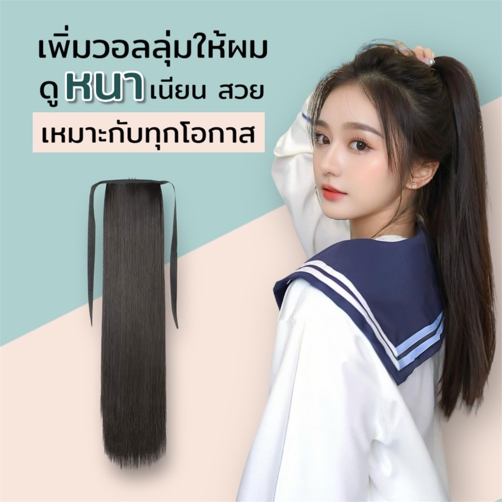 ✨รุ่นพรีเมี่ยม‼️ (พร้อมส่ง)‼️แฮร์พีชหางม้าผูกตรง ไหมคุณภาพดี ยาว 40,50,60 ซม. หนาพิเศษ 100 กรัม