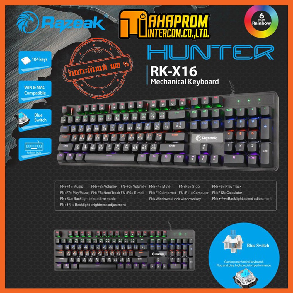 ⌨️ [Semi-Blue พิมพ์สนุก] Razeak RK-X16 Hunter Gaming Keyboard ไฟ RGB ปรับโหมดได้ มี 3 สี ประกัน 1 ปี 🎮