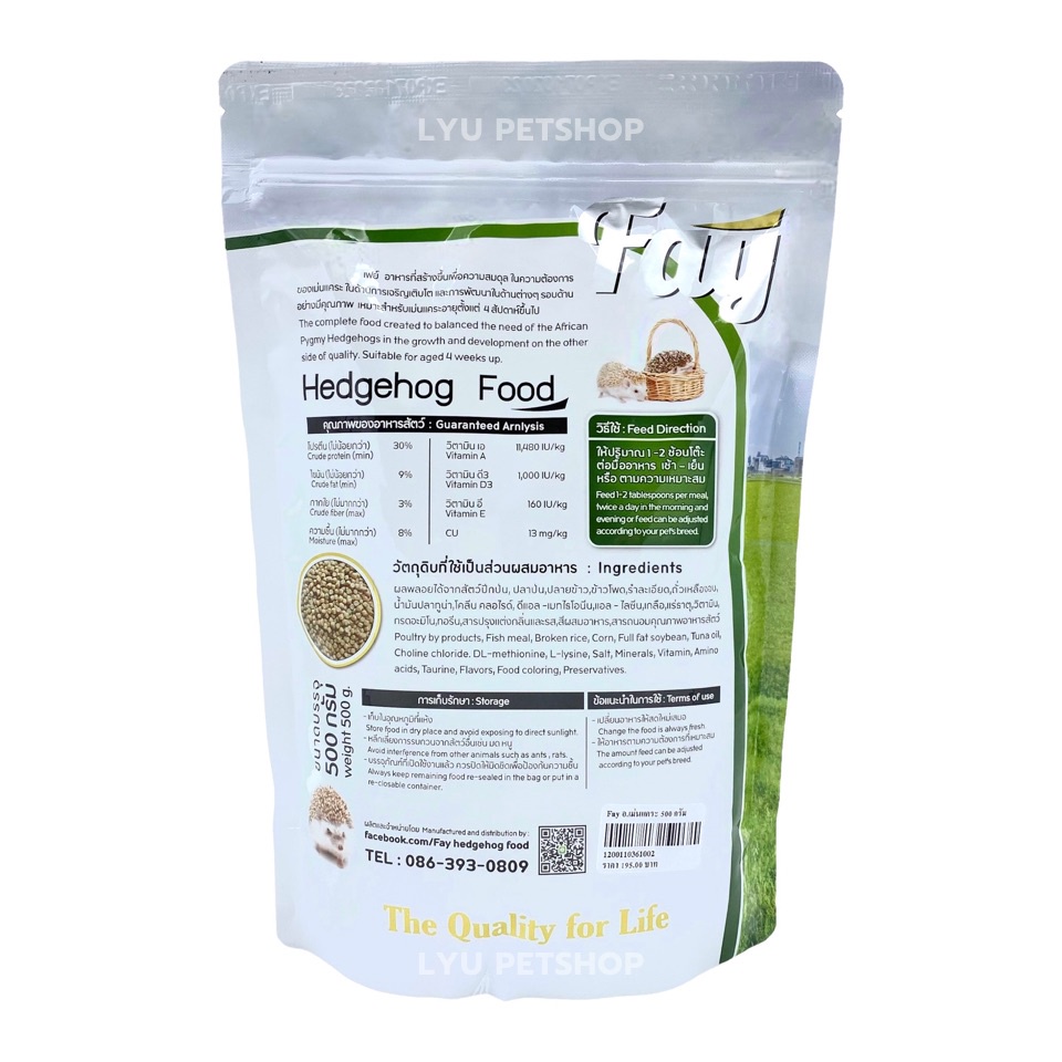 Fay Hedgehog เฟย์ อาหารเม่นแคระ อาหารเม่นสำเร็จรูปชนิดเม็ด ขนาดบรรจุ 500 กรัม