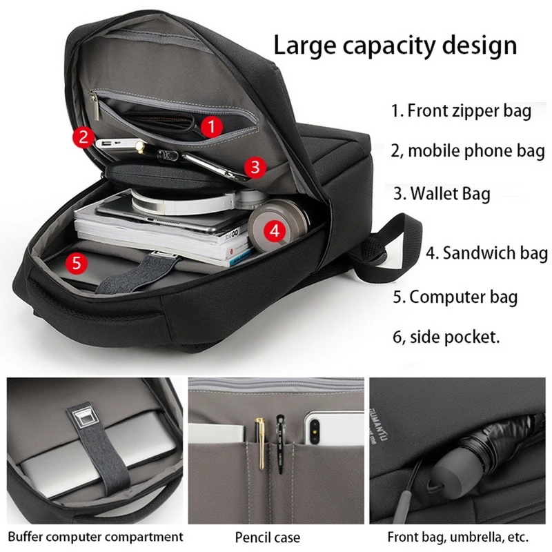 ความจุขนาดใหญ่ 15.6 นิ้วเป้สะพายหลัง กระเป๋าเป้ชาร์จUSB กระเป๋าโน๊ตบุ๊ค กระเป๋าเป้ผู้ชาย สะพายหลัง Business Backpack
