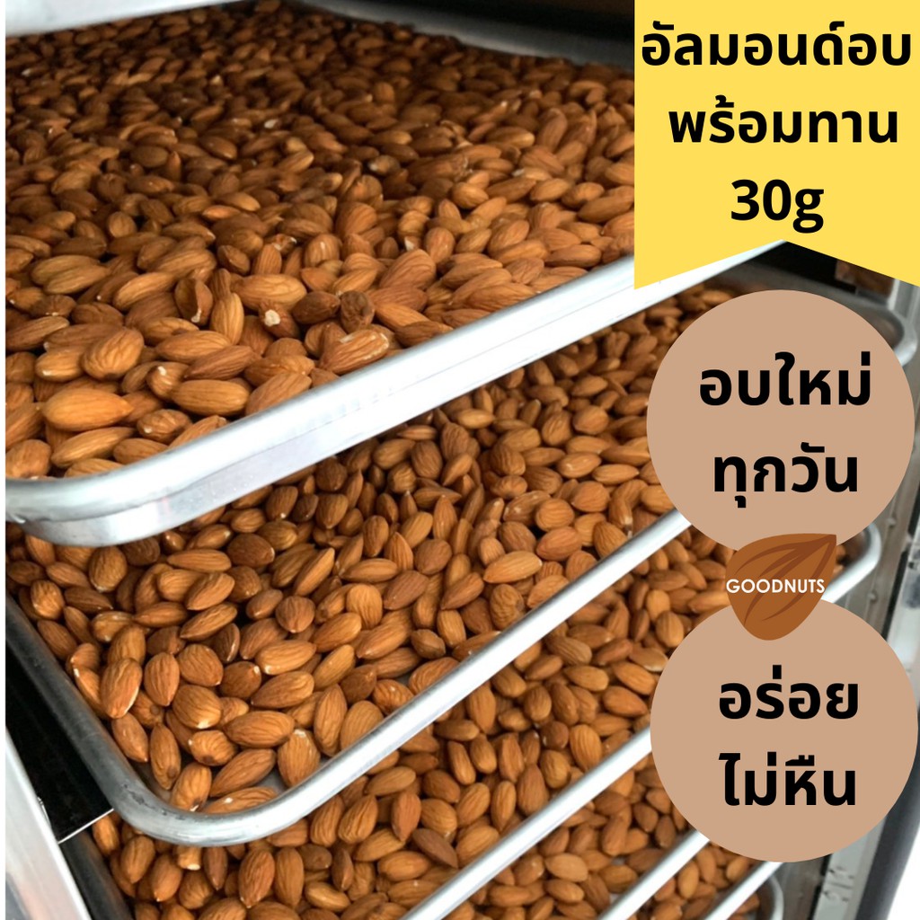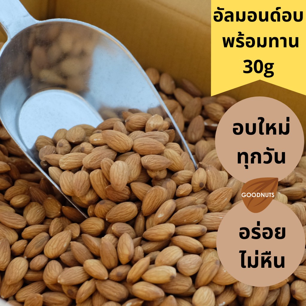 กู้ดนัทส์ อัลมอนด์อบ ธรรมชาติ พร้อมทาน 30g ไร้เกลือ ไร้เนย คีโตทานได้ ขนาดพกพา almonds | Goodnutsbkk