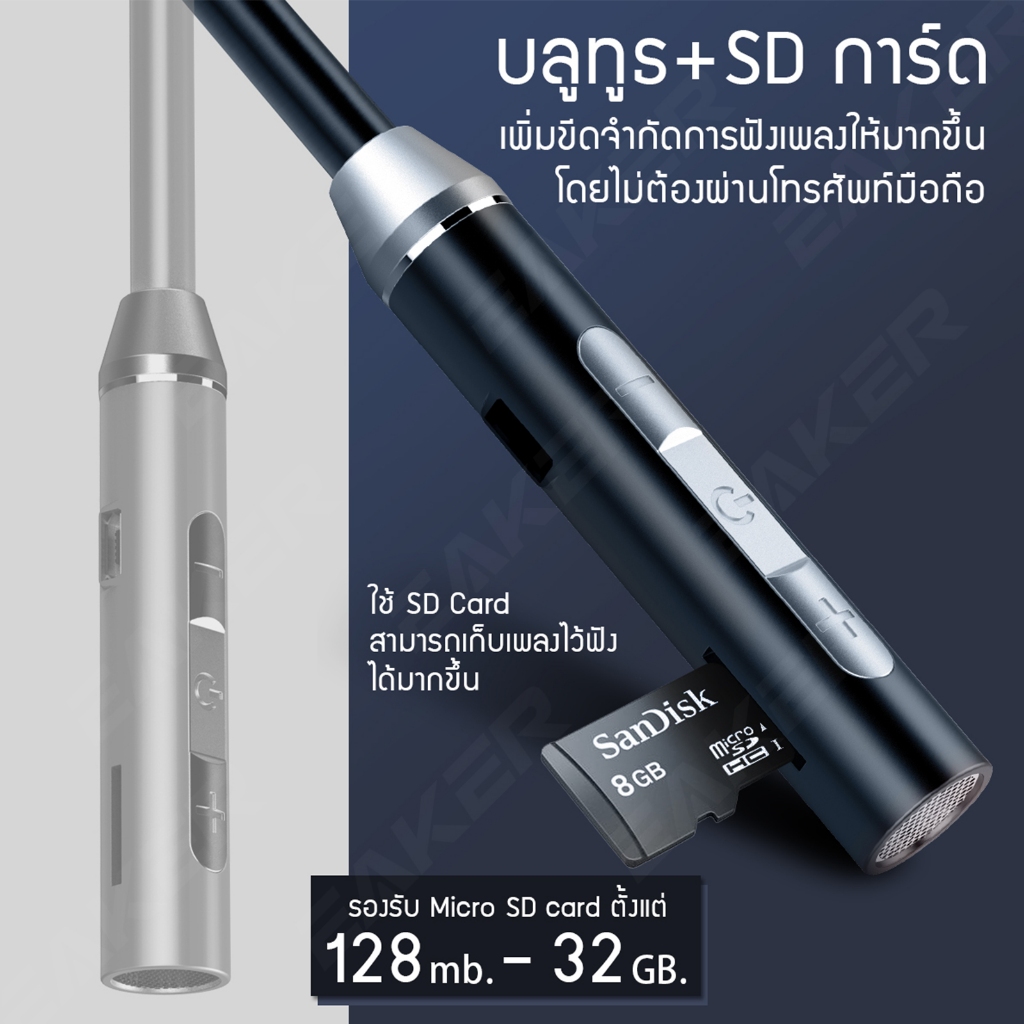 หูฟังบลูทูธ 5.1 หูฟังอินเอียร์แบบคล้องคอ กันน้ำกันเหงื่อ BluetoothSports earphone รองรับSD-Card BT63