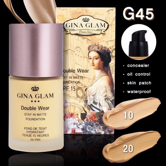 G45 จีน่าแกลม ครีมรองพื้น เนื้อแมท Gina Glam Double Wear Stay In Matte Foundation