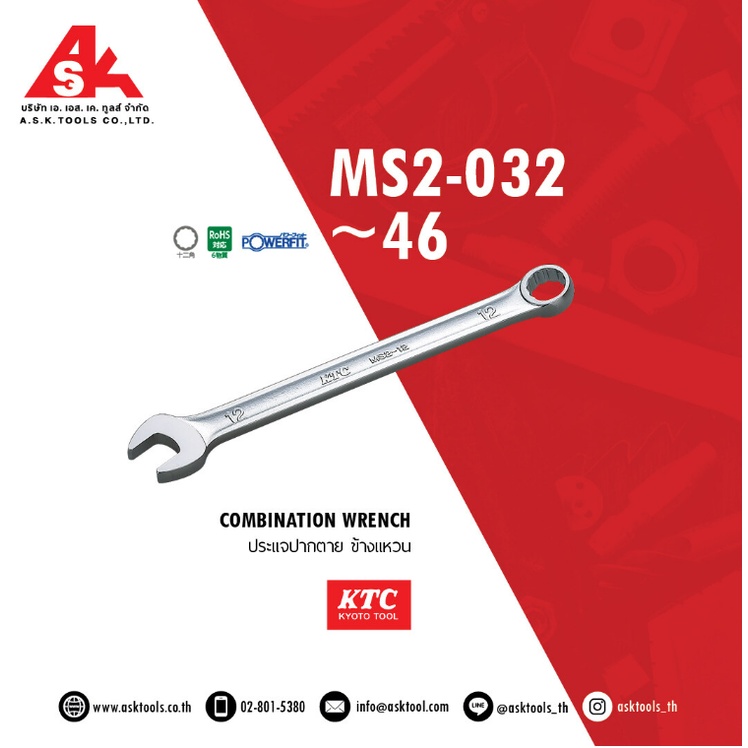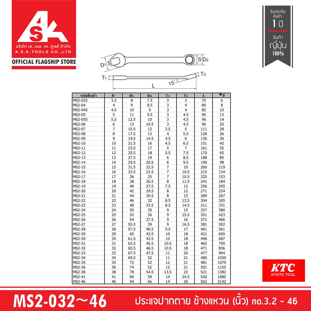 KTC ประแจปากตาย ข้างแหวน ขนาด 3.2 ~ 27 รหัสสินค้า MS2-032 ~ 27