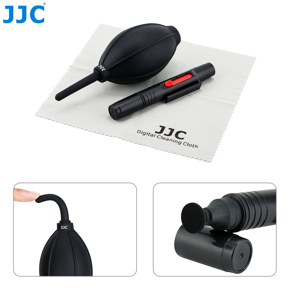 JJC ชุดทำความสะอาดกล้องฝุ่นพร้อมปากกาเลนส์/เครื่องเป่าลม/ผ้าไมโครไฟเบอร์สำหรับ DSLR ชุดทำความสะอาดกล้องและเลนส์