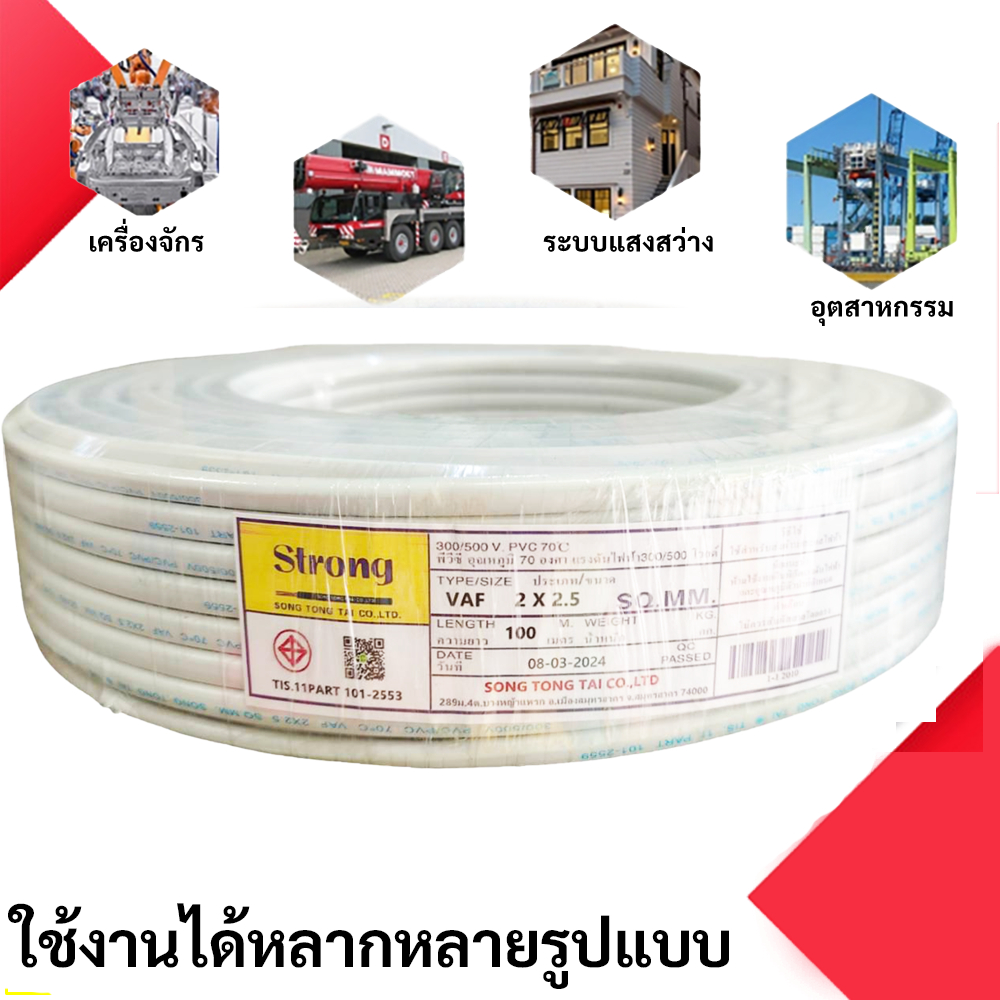 (แบ่งตัด 2-10 เมตร) STR สายไฟ VAF 2*1.5 Sqmm 17A 300/500V สายไฟอาคาร งานทั่วไป สายทองแดง แกนคู่ 2 เส้น