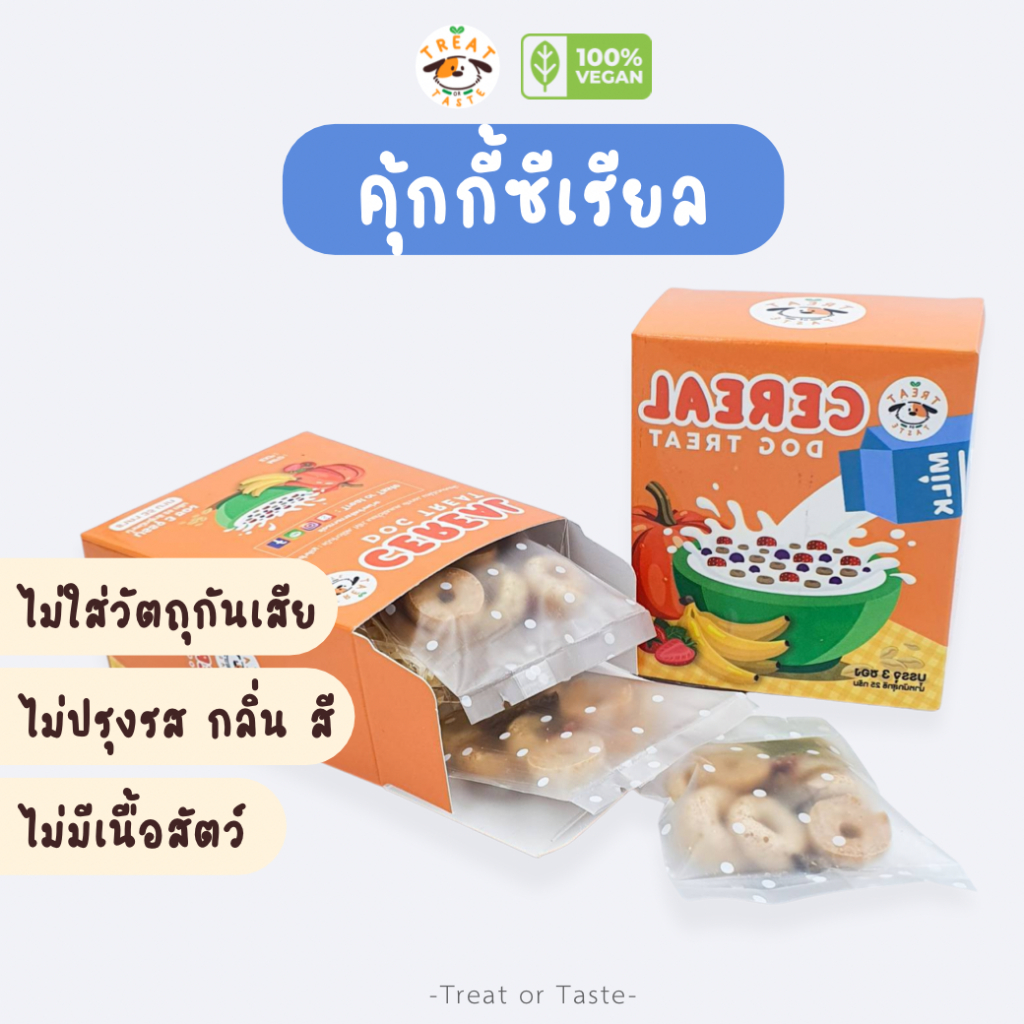 Treat or Taste คุกกี้ซีเรียล ขนมสุนัข ขนมหมา (ไม่มีเนื้อสัตว์) น้องแพ้ไก่ทานได้ ทานง่าย ไม่ปรุงรส Dog Treat Cereal