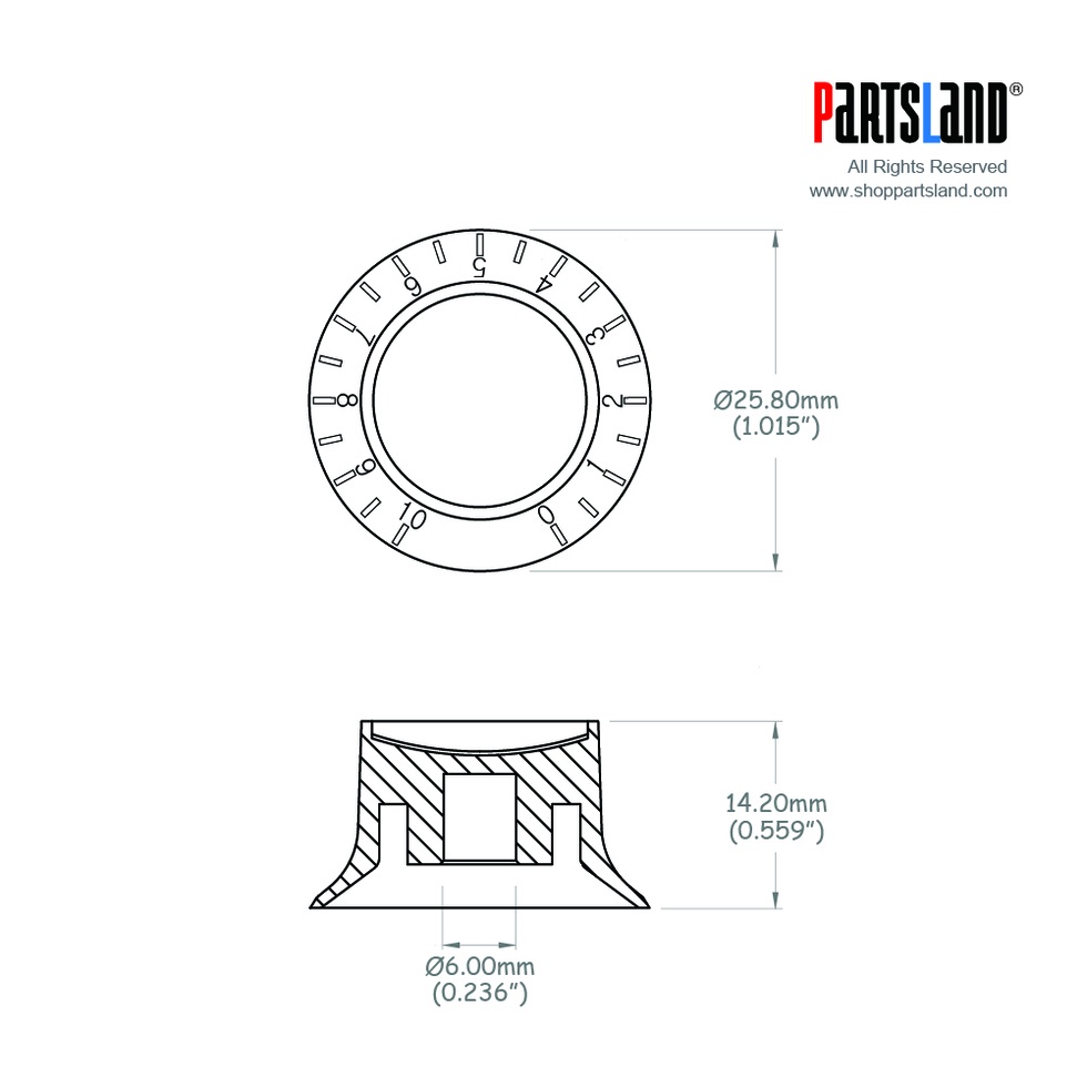 Partsland KSG Chrome Cap Knob Set Volume+Tone ปุ่มโวลุ่มและโทนเซ็ด สำหรับ SG Made in Korea
