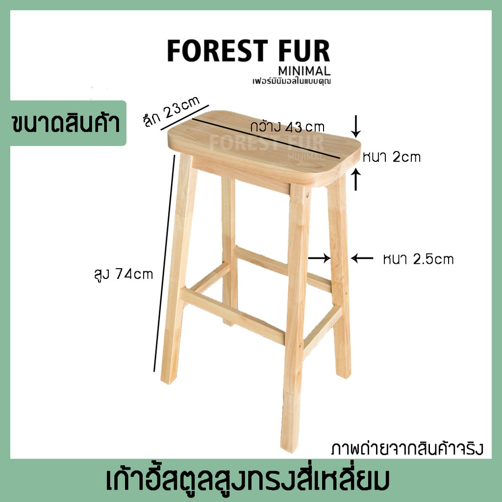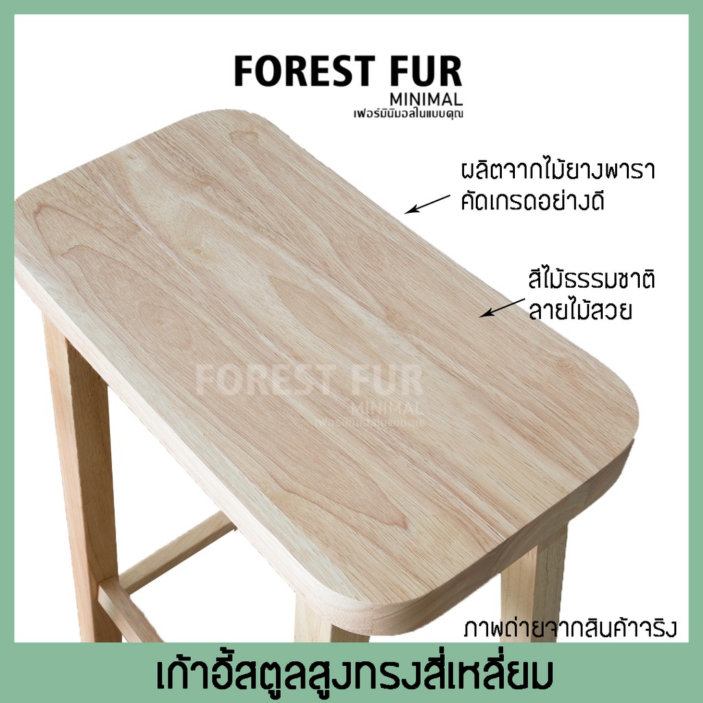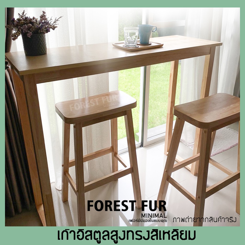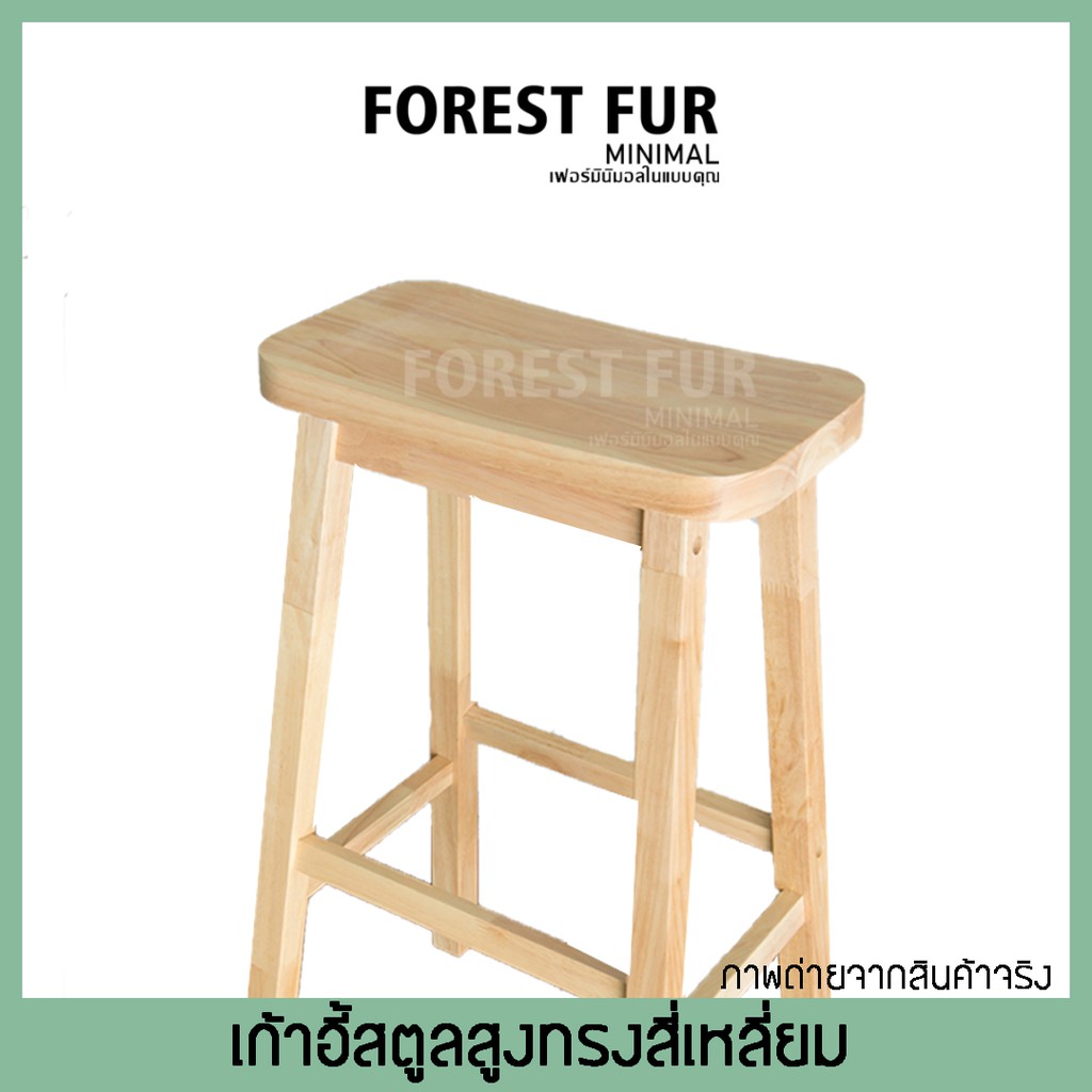 เก้าอี้บาร์ไม้ยางพารา ทรงเหลี่ยม
