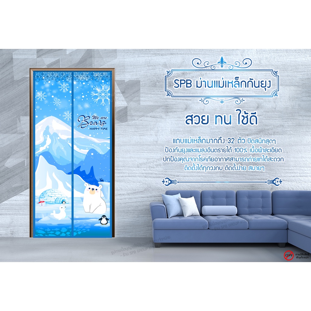 ม่านประตูแม่เหล็กกันยุง SPB ลายหมีขาว มุ้งแม่เหล็กกันยุง Magnetic Screen Door ติดตั้งง่าย แถมฟรี‼หมุดทองเหลือง+หมุดกาว