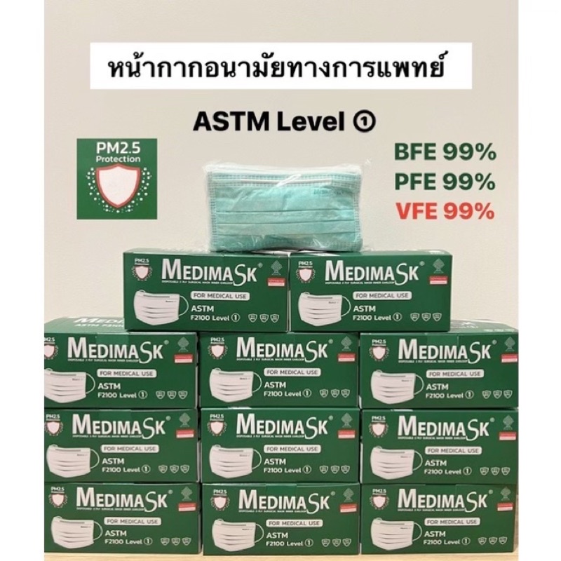 หน้ากากอนามัยทางการแพทย์ 3ชั้น Medimask แท้💯 | เมดดิแมสก์ 50 ชิ้นต่อกล่อง ผลิตในไทย
