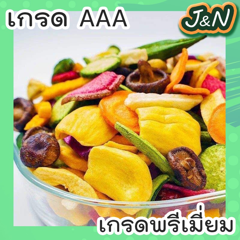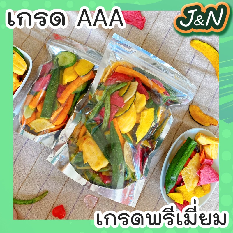 กินเจ【ใหม่】J&N ผักและผลไม้อบกรอบ ผักและผลไม้รวมอบแห้ง กระเจี๊ยบเขียว ผักอบกรอบ ขนมขบเคี้ยว
