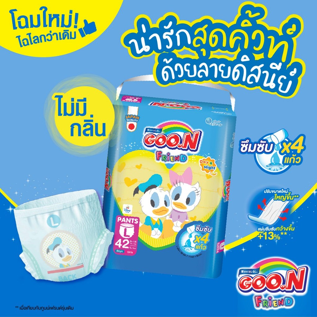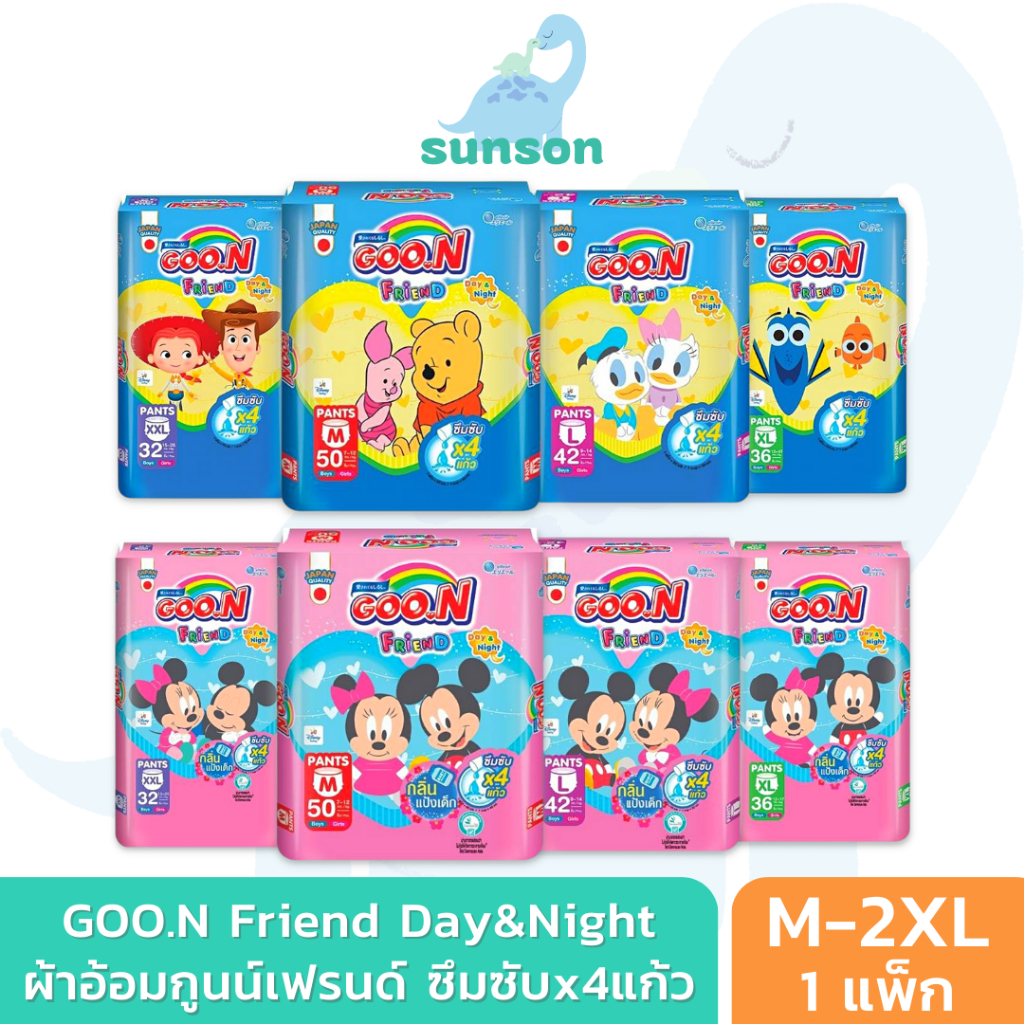 Goon ผ้าอ้อมเด็ก กูนน์ เฟรนด์ ซึมซับx4แก้ว (ไซส์ M-3XL) ผ้าอ้อม รุ่น Goon Friend แพมเพิส แพมเพิสเด็ก