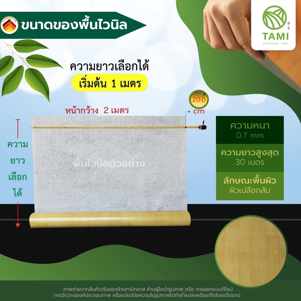เสื่อน้ำมัน pvc ผิวด้าน อย่าง หนา หน้ากว้าง 2เมตร ความยาว แบ่งขาย พื้นไวนิล ฟลอแพลน หนา0.7mm PVC VINYL FLOOR ทามิ