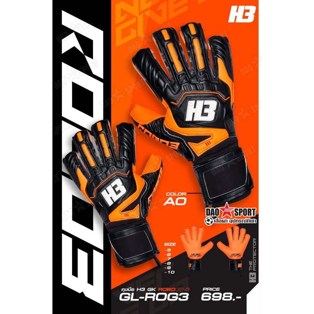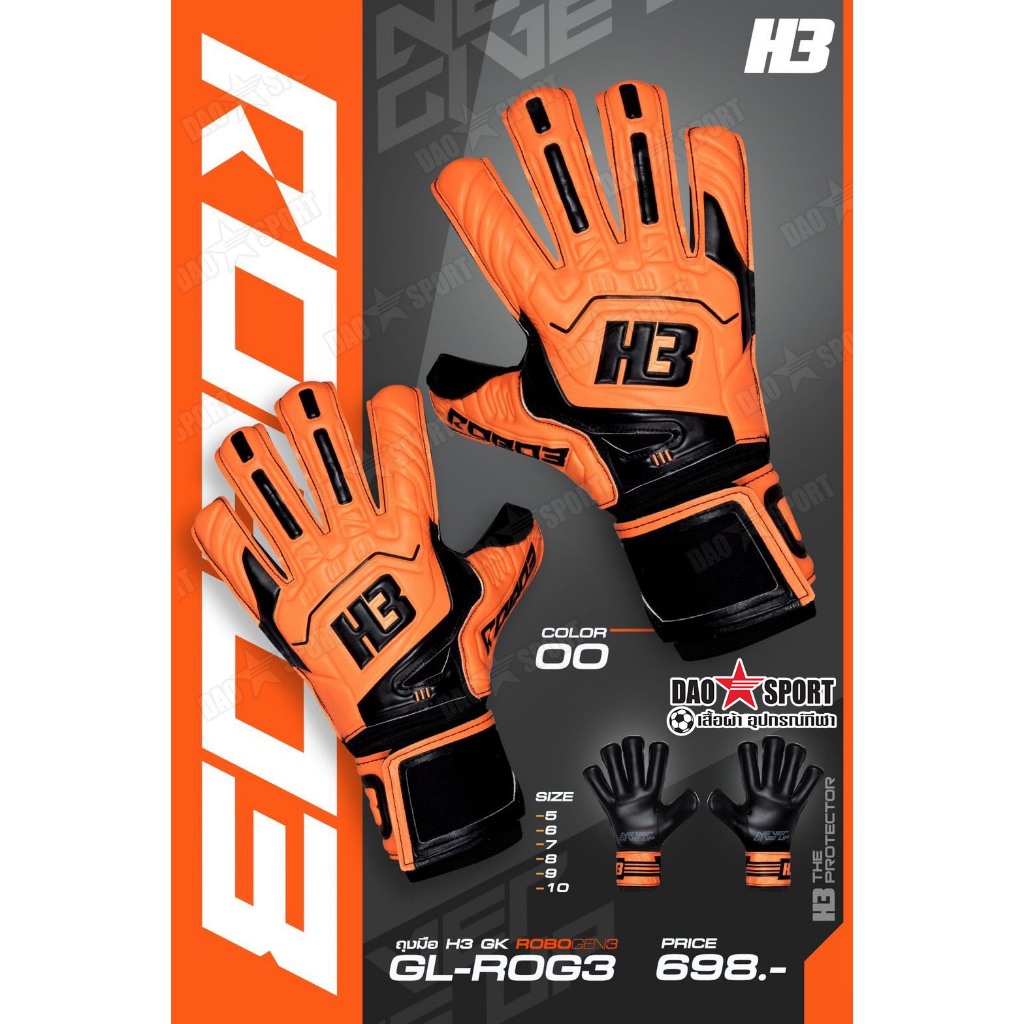 ถุงมือผู้รักษาประตู H3 : ROBO 3 สีใหม่ 2025 ถุงมือโกล์ มีเซฟนิ้ว Finger Safe ถุงมือประตู
