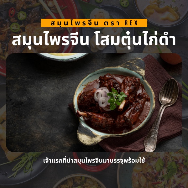 สมุนไพรจีนโสมบำรุง ตุ๋นไก่ดำ-เนื้อ-เป็ด ตรา REX | เสริมพลัง หอมกรุ่น เนื้อนุ่ม | 80 กรัม (1 ซอง)