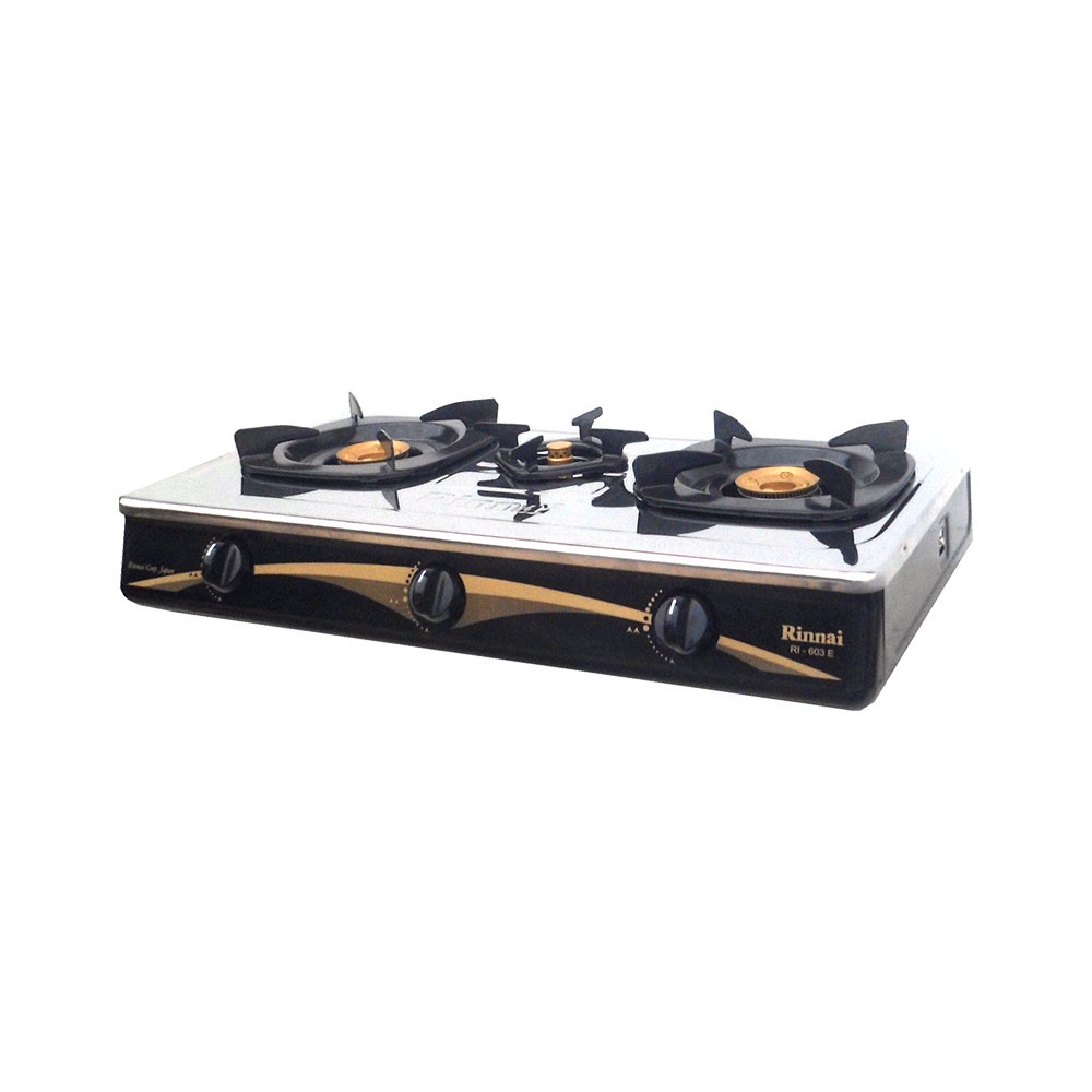 Rinnai เตาแก๊สตั้งโต๊ะ 3 หัว รุ่น RI-603E หัวเตาทองเหลือง รับประกันวาล์วแก๊ส 5 ปี