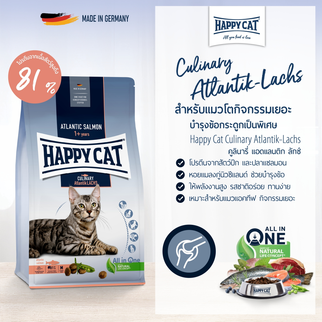 HAPPY CAT Supreme Atlantik Lachs อาหารแมวโต กิจกรรมเยอะ สูตรเนื้อสัตว์ปีกและปลาแซลมอน 300 g