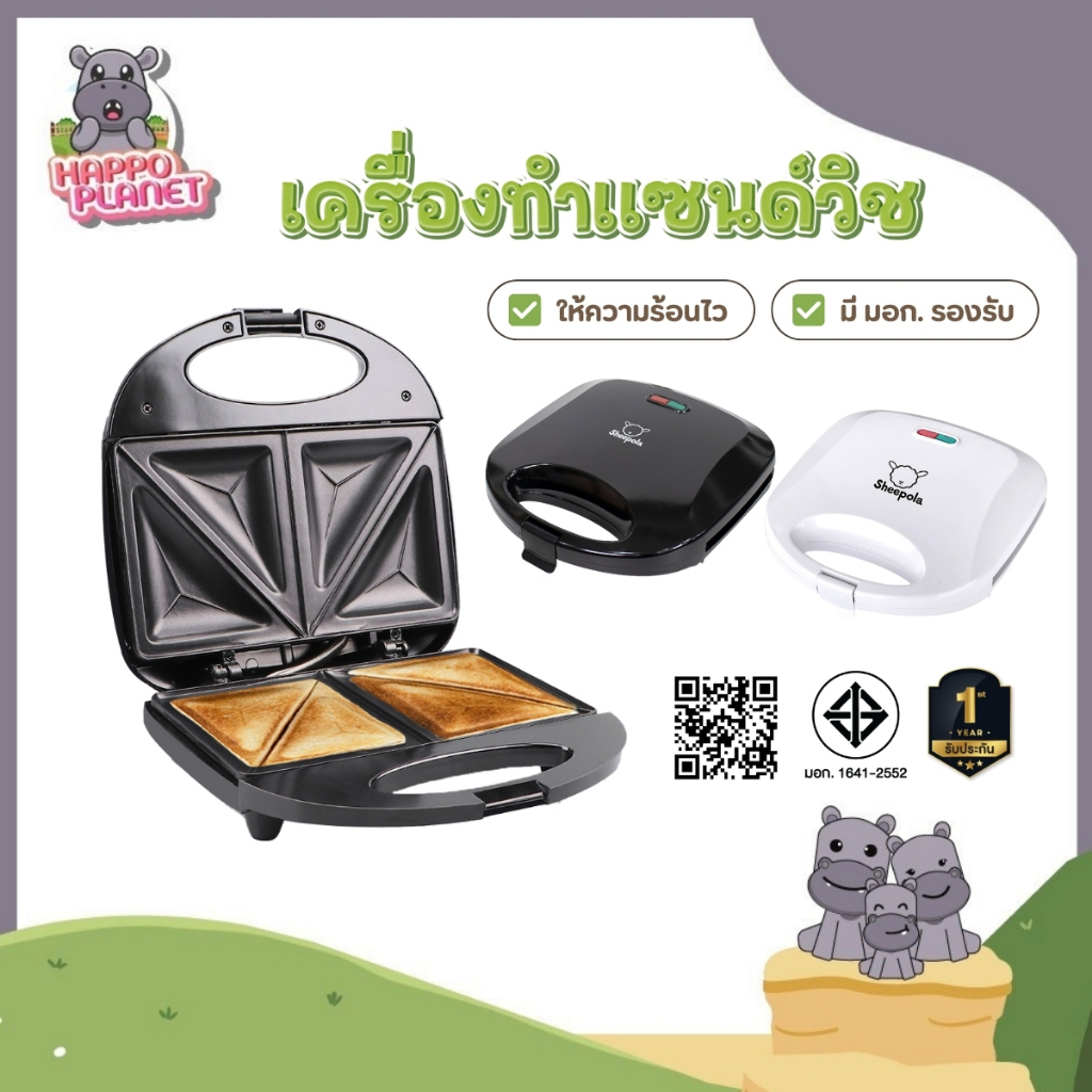 เครื่องทำแซนวิช Sandwich Maker มีให้เลือก2สี ขาว ดำ ใช้งานง่าย ทำได้4ชิ้นต่อ1ครั้ง