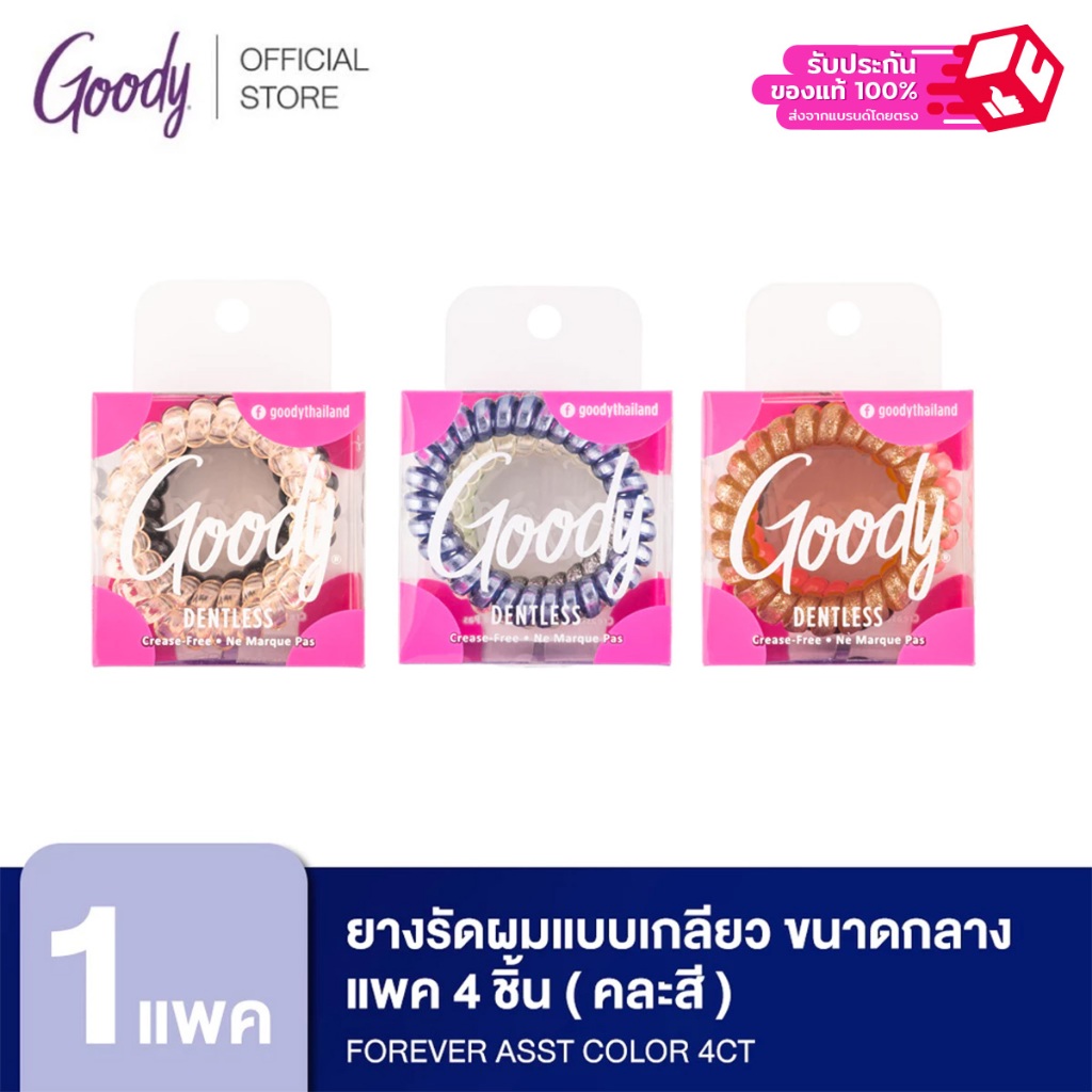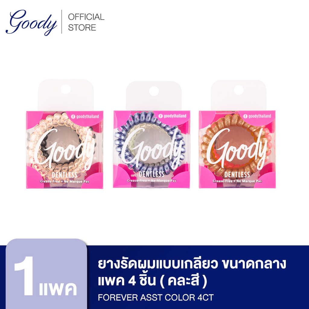 Goody 60312ยางรัดผมแบบเกลียวขนาดกลาง 4 ชิ้น คละสี รุ่น Trend Coil Elastic 4CT
