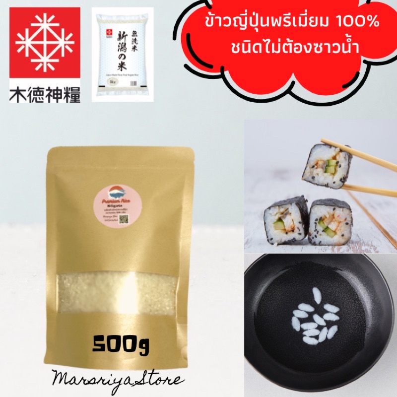 ข้าวญี่ปุ่นแท้ นำเข้า ชนิดหุงแบบไม่ต้องซาวข้าว 500g หอมอร่อย แบบญี่ปุ่นจิรงๆ Japanese rice 500g