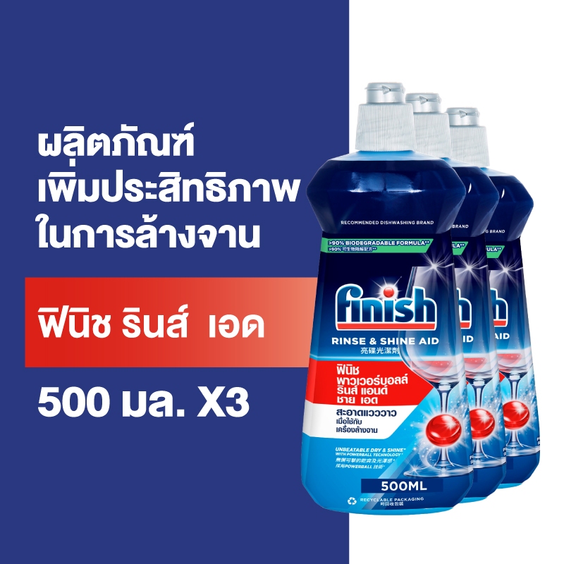 Finish [แพ็ค 3] ฟินิช ผลิตภัณฑ์ล้างจาน แก้วใสแวววาว รินซ์ เอด 500 กรัม