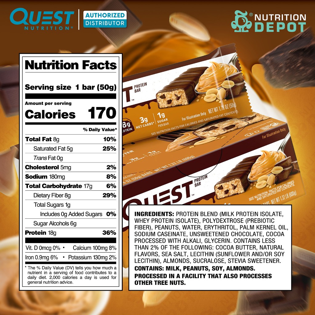 Quest Protein Bar 1 Box (12 Bars) - โปรตีนบาร์ ขนมคลีน (12 ชิ้น)