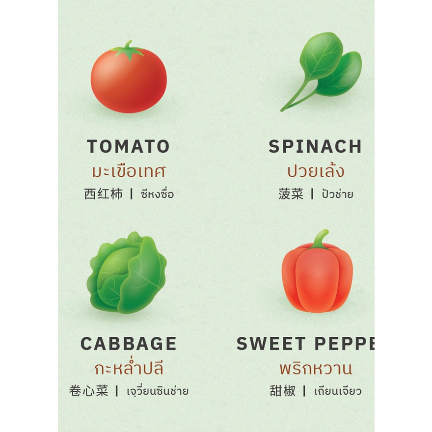 โปสเตอร์คำศัพท์อาหารหลัก 5 หมู่ 3 ภาษา Vocab: 5 Main Food Groups Trilingual