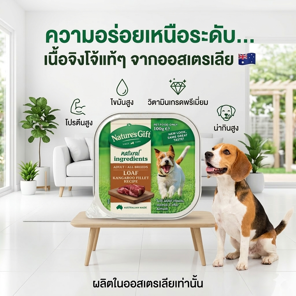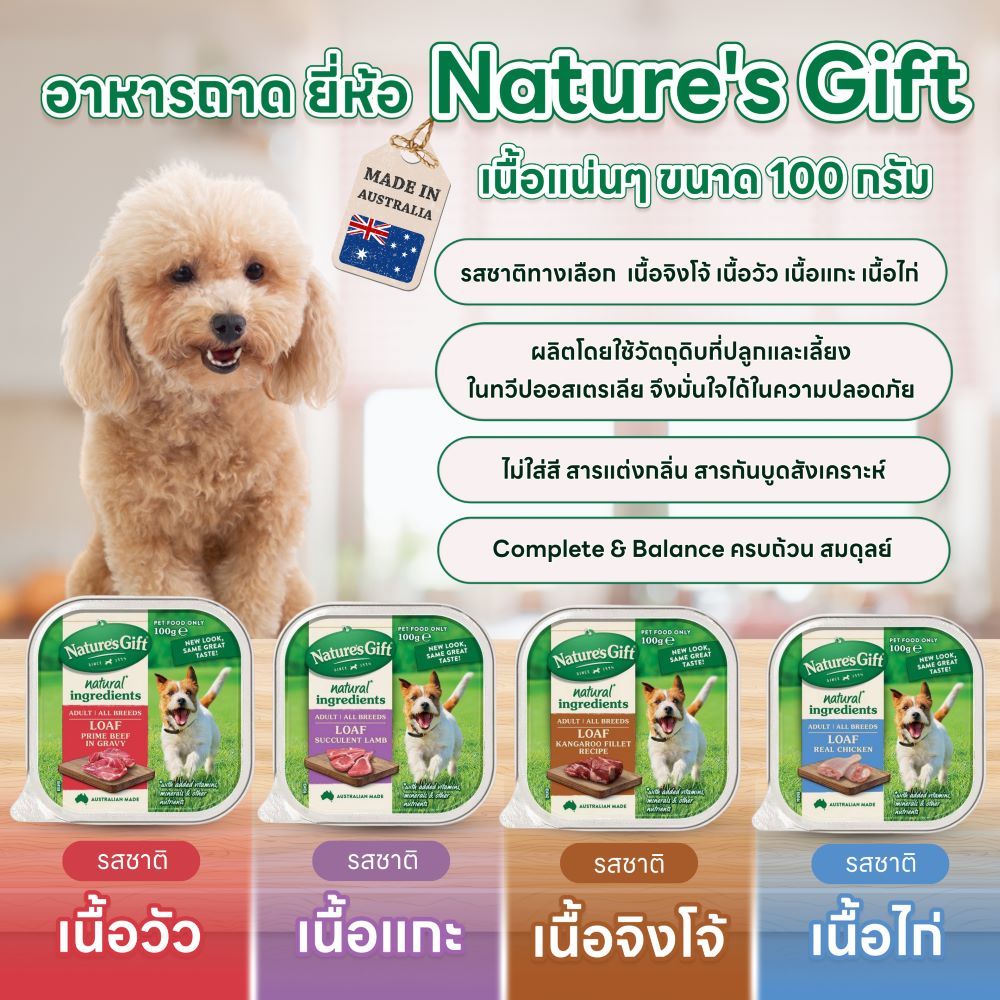 Nature's Gift อาหารสุนัขเนเจอร์สกิฟท์ Kangaroo Fillet (เนื้อจิงโจ้) 100 g. (x 9 ถาด)