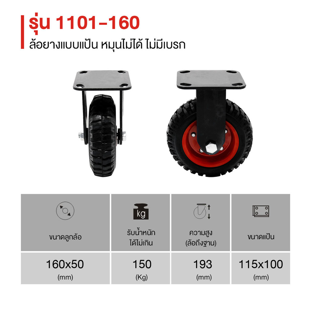 GIANT KINGKONG ล้อยางแบบแป้น หมุนไม่ได้ ไม่มีเบรก รุ่น 1101-160 ขนาด 16 ซม. สีดำ