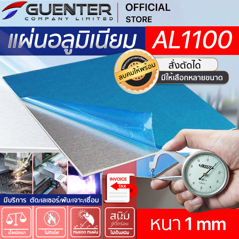 อลูมิเนียมแผ่น 1 mm ขนาด 40x80 cm เกรด AL1100 (สั่งตัด,พับ, เจาะได้) เคลือบฟิล์ม PE กันรอยให้ 1 ด้าน