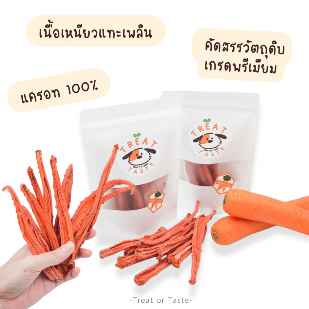 Treat or Taste แครอทอบแห้ง ขนมหมา (ไม่มีเนื้อสัตว์) ธรรมชาติ 100% น้องแพ้ไก่ทานได้ ไม่ปรุงรส ไม่ใส่สารกันเสีย