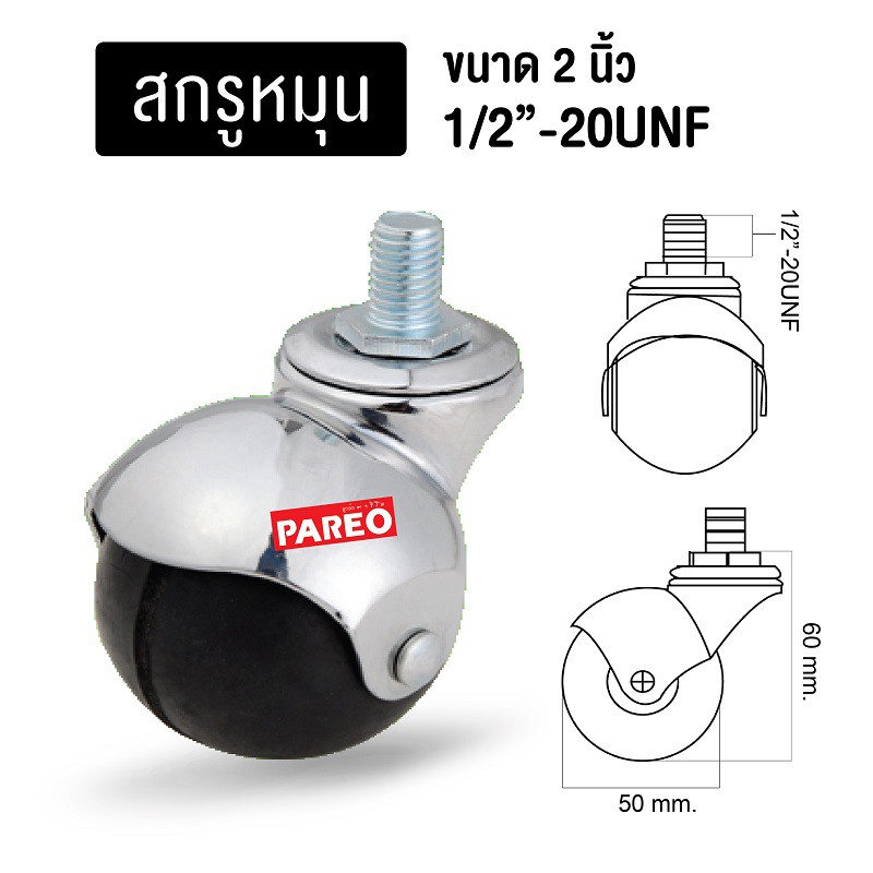 ลูกล้อบอลพีวีซี 2นิ้ว(50มม)ล้อPVC ล้อสกรูหมุน ล้อเฟอร์นิเจอร์ ล้อโต๊ะ ล้อตู้ ล้อเตียง ยี่ห้อPAREO