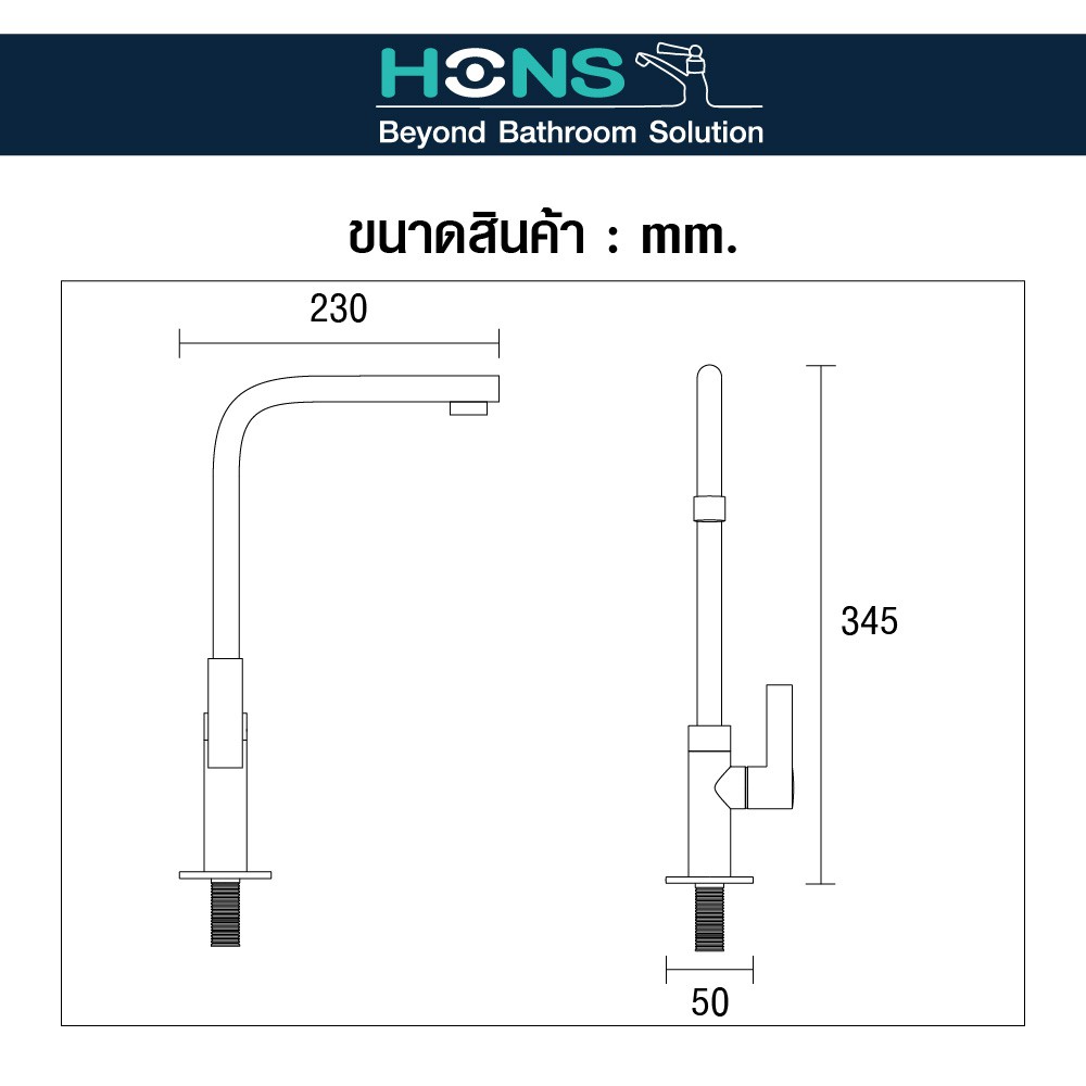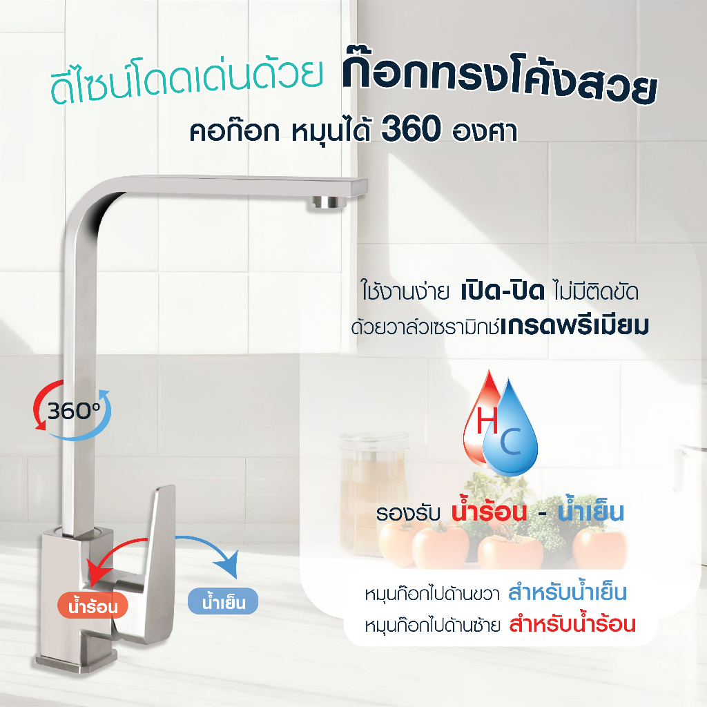 HONS Bathroom ก๊อกซิงค์เคาน์เตอร์ ผสม รุ่น FC2005 สแตนเลส เกรด 304 น้ำร้อน-น้ำเย็น รับประกันสินค้า 5 ปี