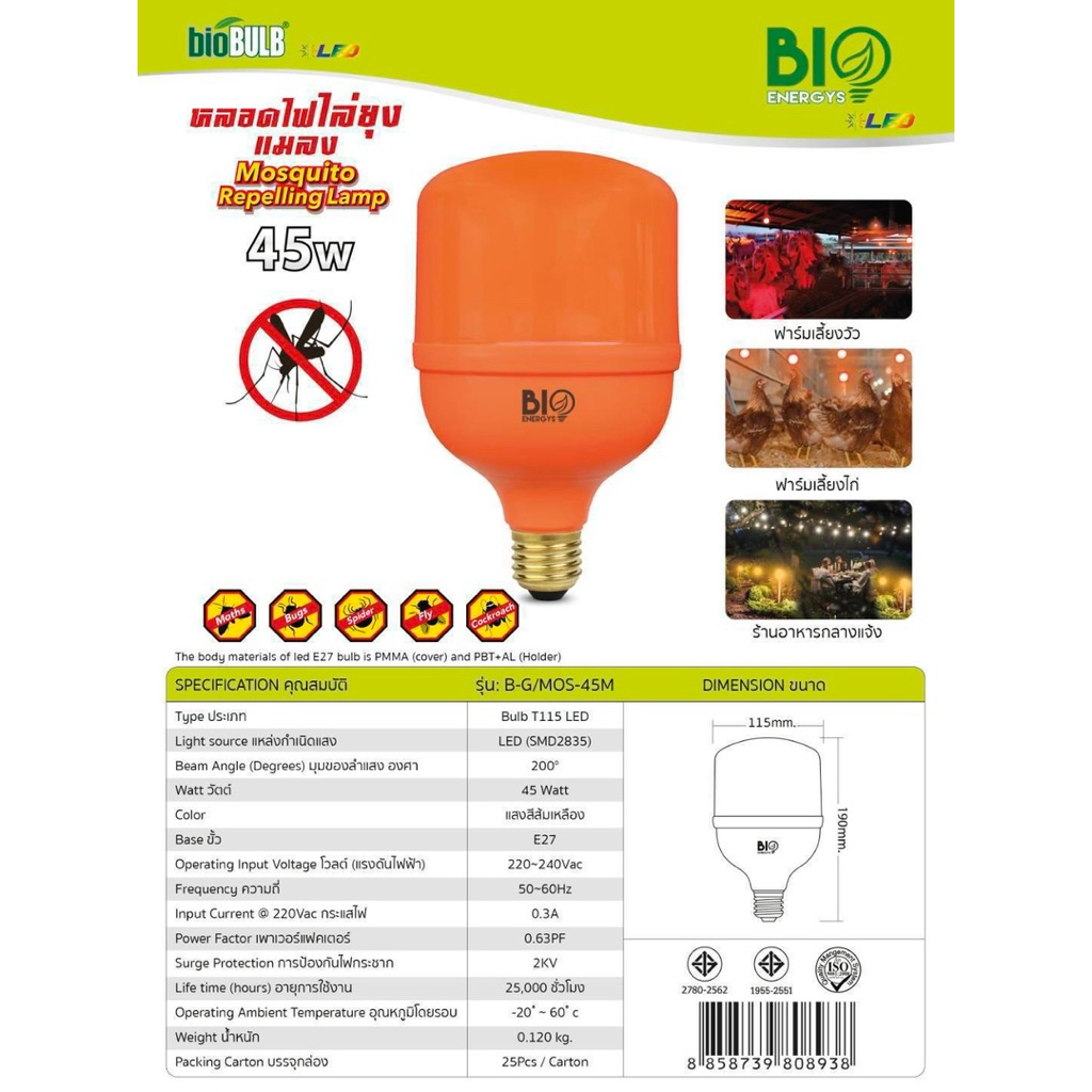 หลอดไฟไล่ยุง ไล่แมลง จัมโบ้ LED 35w 45w ไบโอเอเนอจี ไฟไล่ยุง และ ทอนาโด 23w