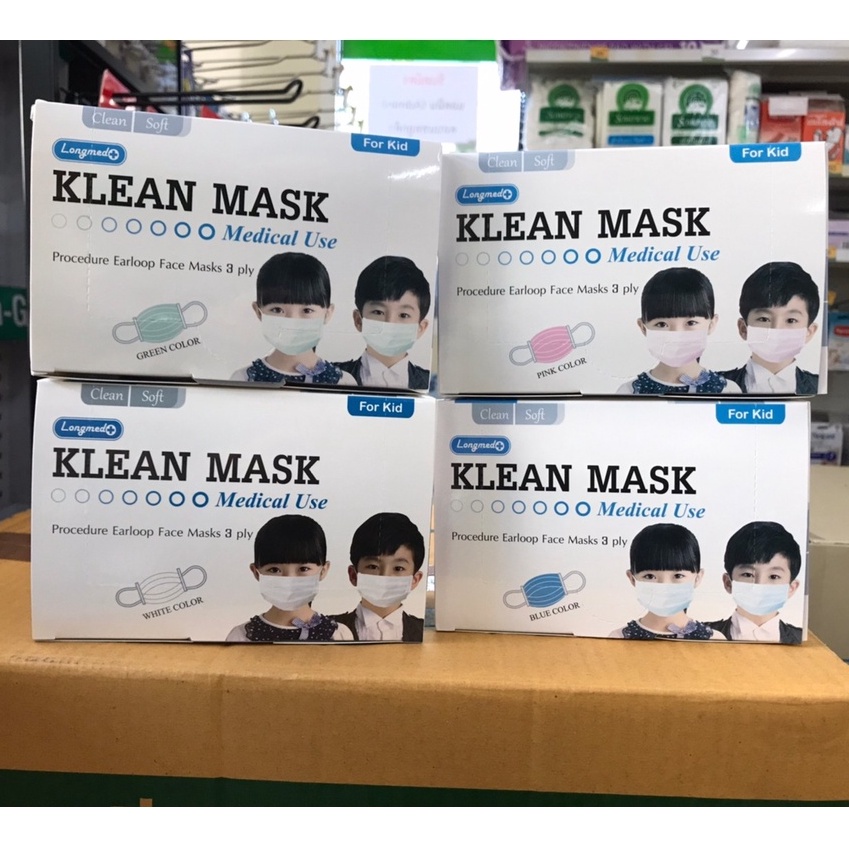 (1 กล่อง) Mask หน้ากากอนามัยเด็ก Klean mask kids 50 ชิ้น สีขาว แมสทางการแพทย์สำหรับเด็ก