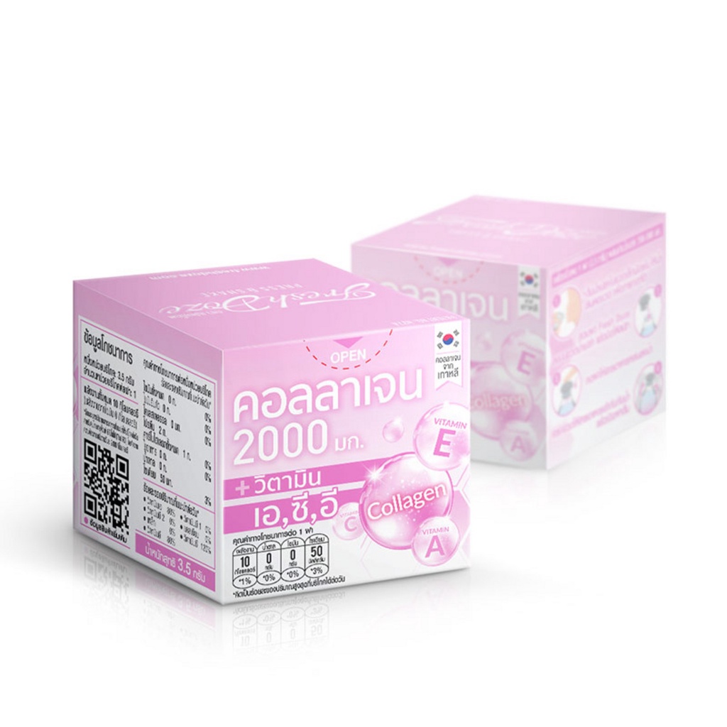Fresh Doze เฟรชโดส เพรสแอนด์เชค คอลลาเจน2000 A,C,E กลิ่นสตรอว์เบอร์รี 3.5กรัมxแพ็ก6&12กล่อง(ชมพูอ่อน)