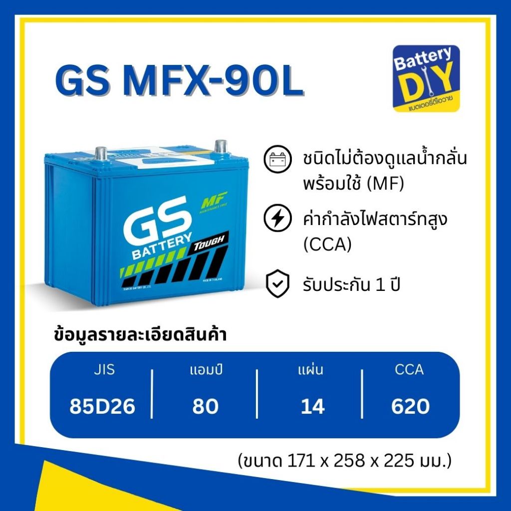 แบตเตอรี่รถยนต์ (กึ่งแห้ง) GS 80 แอมป์ รุ่น MFX-90L (85D26L) สำหรับ รถกระบะ