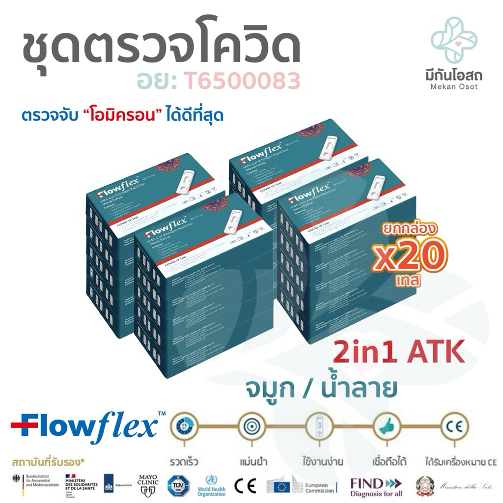 ชุดตรวจโควิด ATK Flowflex 2in1 จำนวน 20 เทส (ยกกล่อง) ❤️พร้อมส่งจากร้านยา❤️ สามารถเลือกเก็บตัวอย่างจากจมูกและน้ำลายได้
