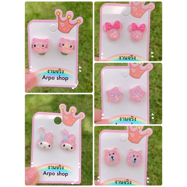 ตุ้มหูเด็ก,ต่างหูแบบหนีบ,ส่งจากปทุมธานี(ลายเยอะกว่าในรูป)แถมซิลิโคนกันเจ็บทุกคู่